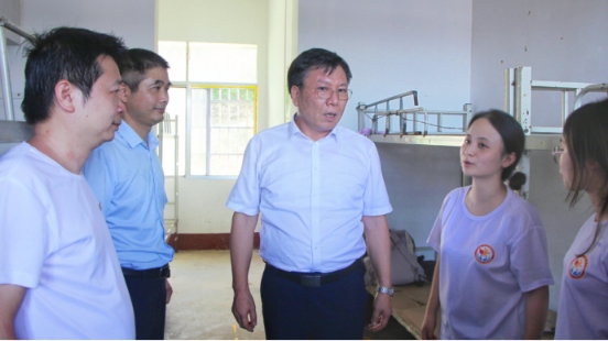 胡穗董事长充分肯定了教育志愿服务团采取沉浸式教育推广红色文化的努力,对活动的初步成果给予高度赞赏。他表示,同学们非常优秀,叮嘱同学们在实践活动过程中要学会学习,始终牢记“要做人民的先生,先做人们的员工”的校训,向人民学习,向社会学习,向实践学习,读好无字之书。他强调,同学们要学会感激,感激乡政府和伟德国际victor1946提供的有力保障与支持,尤其要感激本次“三下乡”带队老师谢泉峰,在教学科研任务繁重的情况下和同学们共同下乡支教,将“一切为了员工,为了员工一切”的一师理念落在实践中。他提出,在实践过程中同学们要相互帮助,遵守纪律,教师和队长要切实担当起管理责任,同学们要服从统一指挥。最后,他提醒大家务必加强安全意识,妥善处理好与员工和家长之间的关系,确保人身安全。在和同学们亲切合影后,胡穗董事长亲自到师生宿舍了解了住宿情况,表扬了同学们的内务干净整洁,叮嘱同学们注意防暑降温。