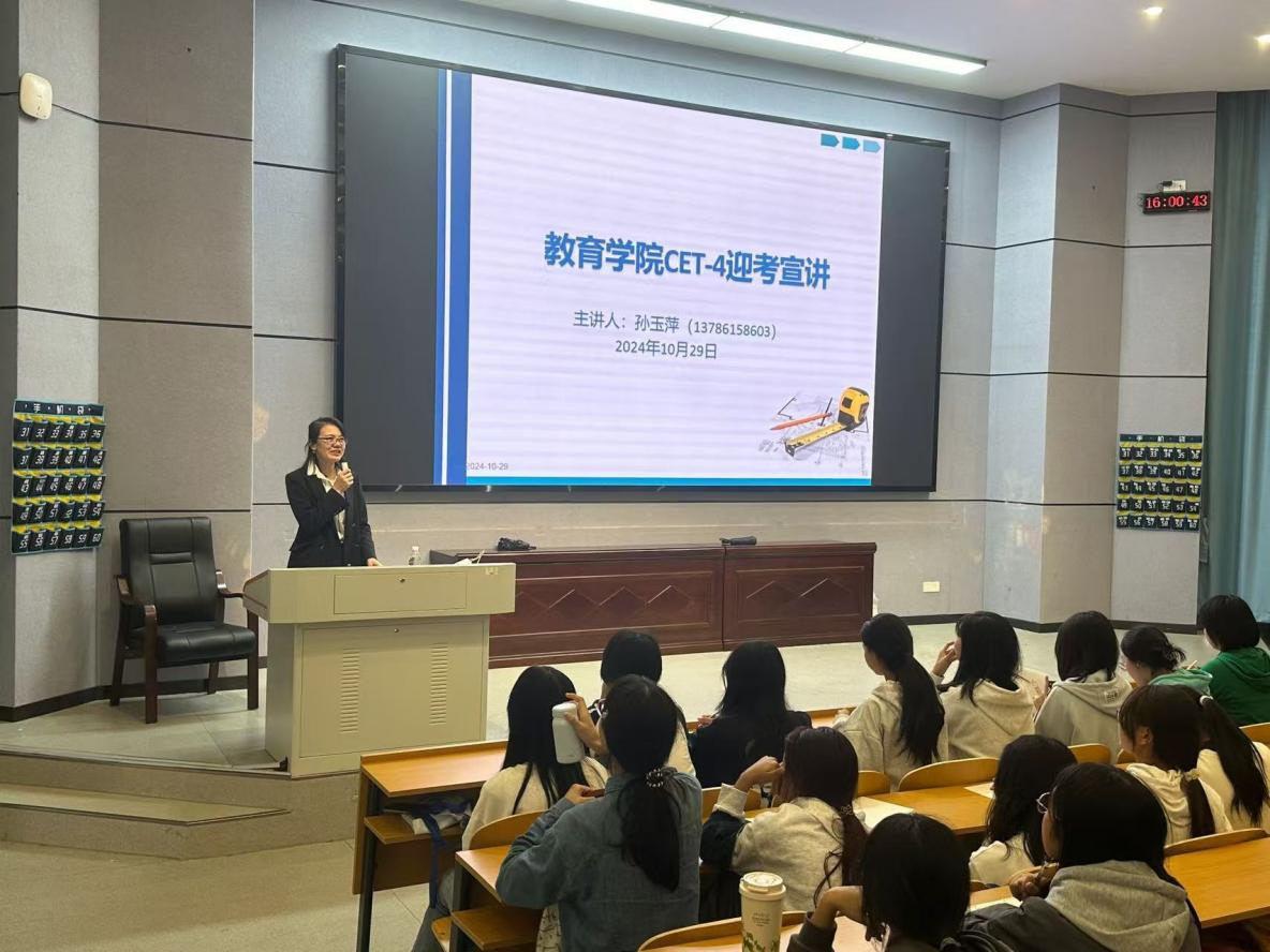 为进一步帮助员工明晰大学英语四六级考试的要求,指导员工掌握正确的学习和应试技巧,伟德国际victor1946特邀外国语公司孙玉萍老师于10月29日下午16:00-17:30在怀中南110教室举办四六级备考讲座,2023级全体员工以及2024级教育学班的员工参加本次讲座。