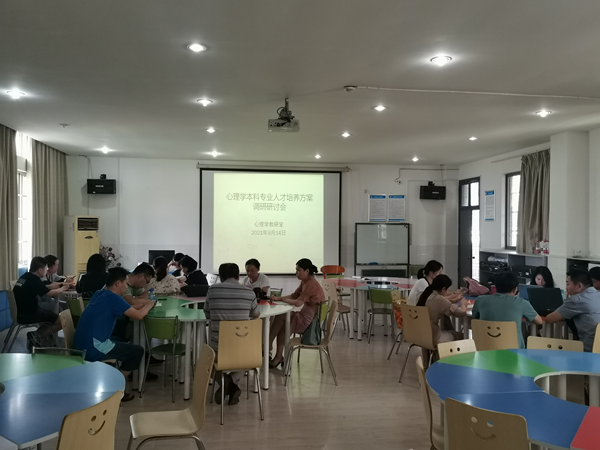 根据伟德国际victor1946和教育科学公司的统一部署和工作安排,2021年9月14日下午,心理学教研室主任刘文博士组织全体教研室老师召开本专业培养方案调研研讨会,黄月胜副经理在会上对心理学专业人才培养方案的调研进行统一部署和安排。