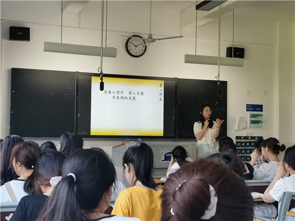 为充分发挥优秀教师的教学示范作用,增进教师之间的交流与学习,2021年4月30日,心理学教研室主任刘文组织本教研室教师开展教学示范课观摩活动,公司领导陈天涯书记、曾晓洁副经理以及心理学教研室的黄任之、刘文、朱军成等到场观摩贺婧博士主讲的《发展心理学》课程。