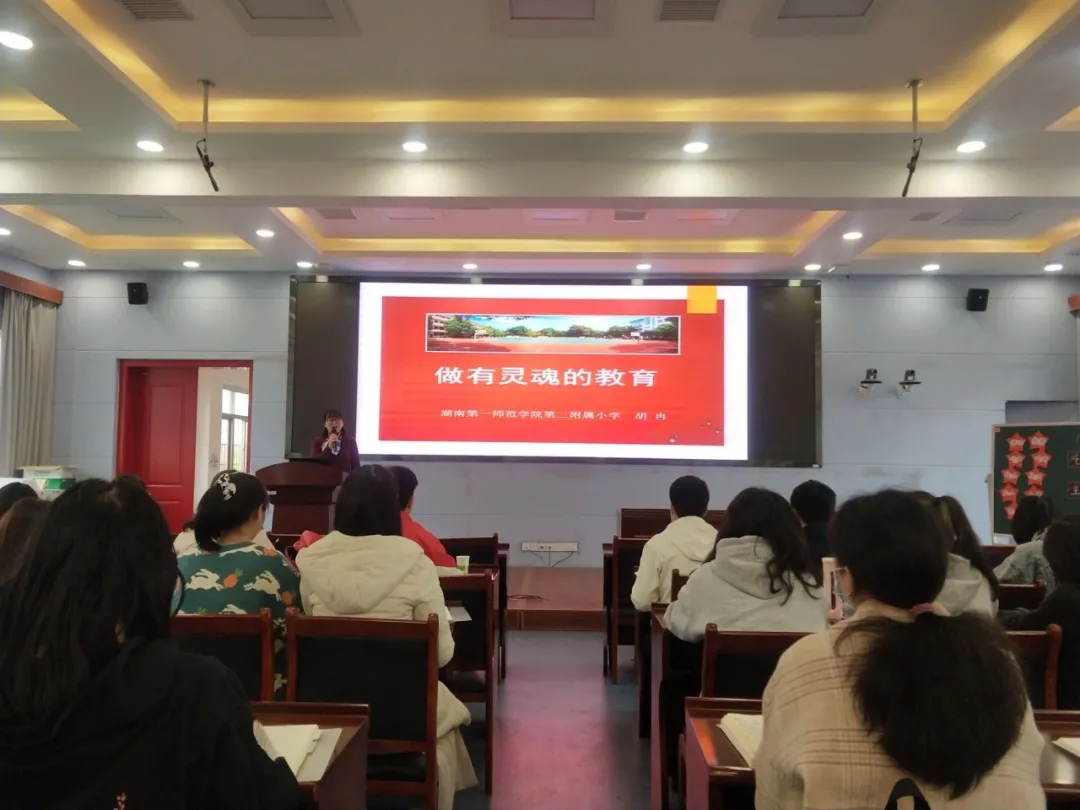 随后,一师二附小胡冉老师开展微讲座《做有灵魂的语文教育》。胡老师从童心、激情、热爱、智慧四个关键词入手,分享了她在教学方面的成长经历以及富有创造性的教学手段,以此来引导、鼓励大家做有灵魂的语文教育。胡老师能立足儿童的心理特点,创设员工喜爱的教学情景;同时与家长默契配合,创新学习方法,促使教学手段多样化,降低了学习难度,提高了学习效率,使员工的学习兴趣和学习能力得到了进一步提升,给我们树立了一个极好的典范。