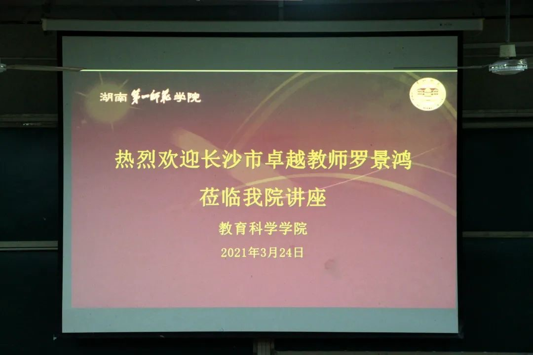 3月24日晚上7点,长沙市卓越教师罗景鸿老师“做有‘生长性’的语文教师”的主题讲座于怀中楼南栋107教室成功开展。教育科学公司曾晓洁副经理主持本场讲座。