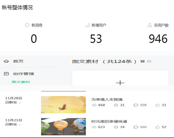 截止到2020年11月30号,该项目引导员工撰写创新创业申报书、设计调查问卷,引导员工参与或者独自撰写论文,同时,团队同学运营了“成善成美”微信公众号。在戴教授的指导下,团队每位团队同学以老员工生活、工作和学习点滴为着眼点,撰写“幸福”主题推文,在 “成善成美” 微信公众号上推出。现微信公众号关注人数已达946人,推送的原创小文章和视频达124条,这些幸福主题小推文和视频很接地气,极易引发大家的共鸣;在公众号上,有很多读者留言,畅谈自己对于幸福人生、幸福成长、幸福教育等等的感悟,很好地引领更多人品味幸福。目前,正在构建的幸福问题线上答疑栏目,将针对有困惑的人,特别是老员工,在观念和思维方式的优化上,提供更精准,更深入的个性化服务,以帮助提升幸福能力,获得幸福感。