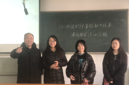 2020年12月22日下午在怀中南303教室,戴小春教授指导的课外教学活动项目“17级-19级幸福能力培养”进行了汇报展示,黄月胜经理助理饶有兴致地听取了项目汇报,并给予了高度评价。