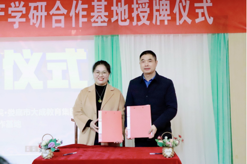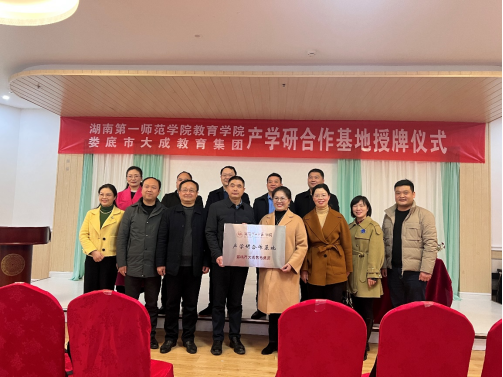 最后,朱承学书记代表公司与娄底市大成教育集团签订了“产学研合作基地”共建协议,并举行了授牌仪式。