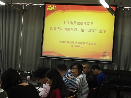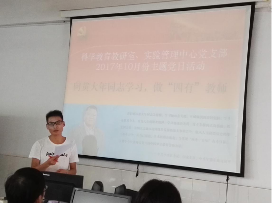 为进一步开展向黄大年同志学习,根据公司党总支的安排,在1010日,公司三个教师党支部如期开展主题党日活动。此次党日活动的主题是“向黄大年同志学习,做‘四有’教师”。