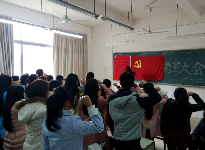 会后,三个支部发展为预备党员发展对象统一在文c103举行宣誓仪式,学工办刘军老师做了总结发言。刘军老师首先对同志们的表现给予了肯定,对发展为预备党员的同志提出了更高的要求,希望今后充分发挥党员的先进性、积极服务于他人,同时也严肃指出了普遍存在的问题及努力方向。