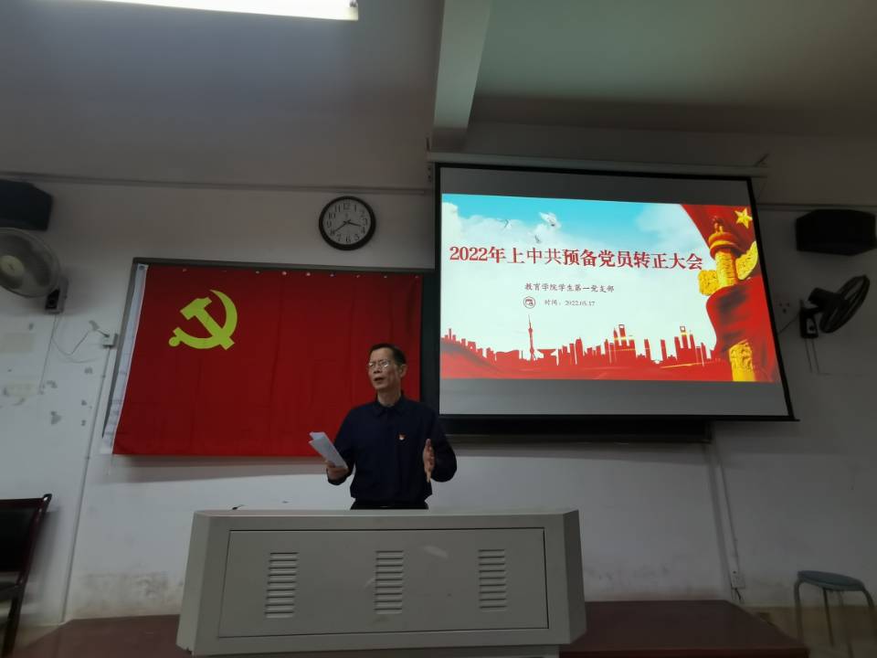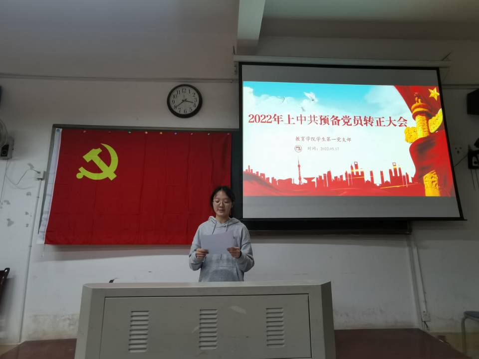 支部书记邓魁老师对本次大会进行总结。邓魁老师首先向39名如期转正的预备党员同志表示了热烈的祝贺。其次对康红蕾同志提出了表扬。康红蕾同志经常积极主动向入党培养人汇报思想、学习、工作情况,邓魁老师希望大家都向其学习,定期向领导、同学汇报自身情况以不断促进自身的进步。接着,邓魁老师对支部的战斗力、凝聚力以及取得的成绩表示充分肯定,并希望继续和同志们一同努力将支部建设得更好。最后邓魁老师对各位党员同志提出了几点希望:第一,不断重温入党誓词,真正做到不忘初心、牢记使命;第二,逐步明确自己新的奋斗目标,鞭策自己、不断进取;第三,养成终身学习的品质,做永久奋斗者。