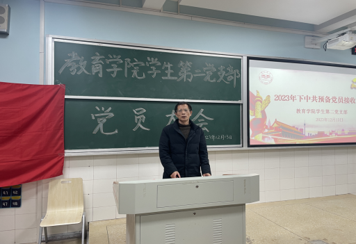 张志新发表讲话,对党员发展对象提出要求,一是牢记住今天这个重要日子,因为这是党员同志的第二个生日,是党员同志的政治生日;二是要进一步端正入党动机,要与时俱进地改造自己的主观世界,真正做到在思想上入党;三是要不断加强政治学习,提升理论素养;四是要切实发挥好党员的先锋模范作用,要做好表率、做好标杆,带动和影响身边的同学;五是要坚持党员的权利和义务两者的统一,积极行使党员权利,认真履行党员义务。