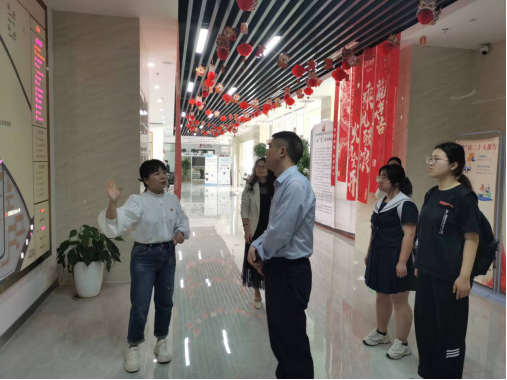 在润龙社区党总支书记黄茜等的陪同下,朱承学一行参观了润龙社区党群服务中心的图书阅览室、运动场所、党课报告厅、优秀党员荣誉墙等场所,了解社区党支部党建工作、社区党支部服务社区居民等情况。