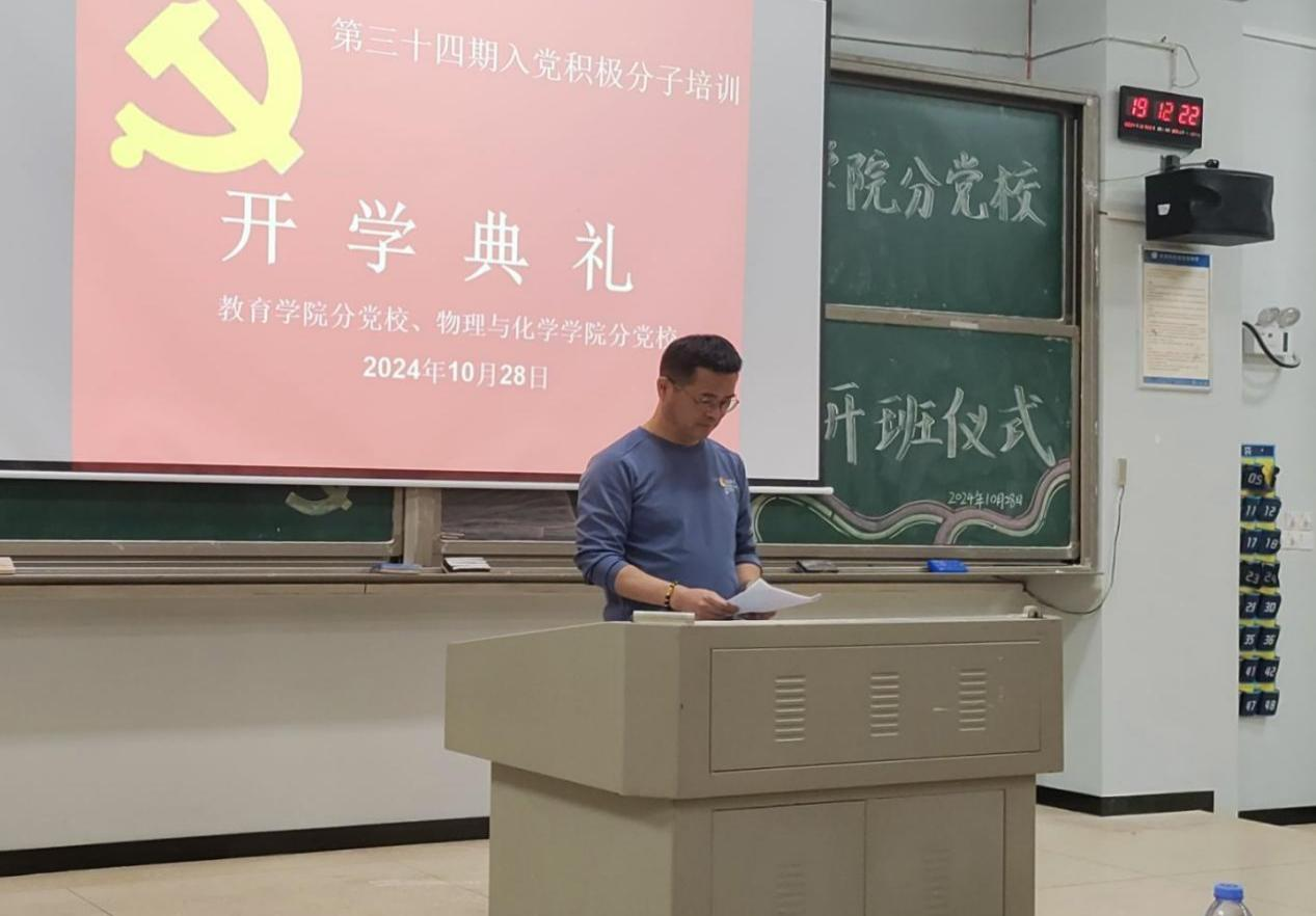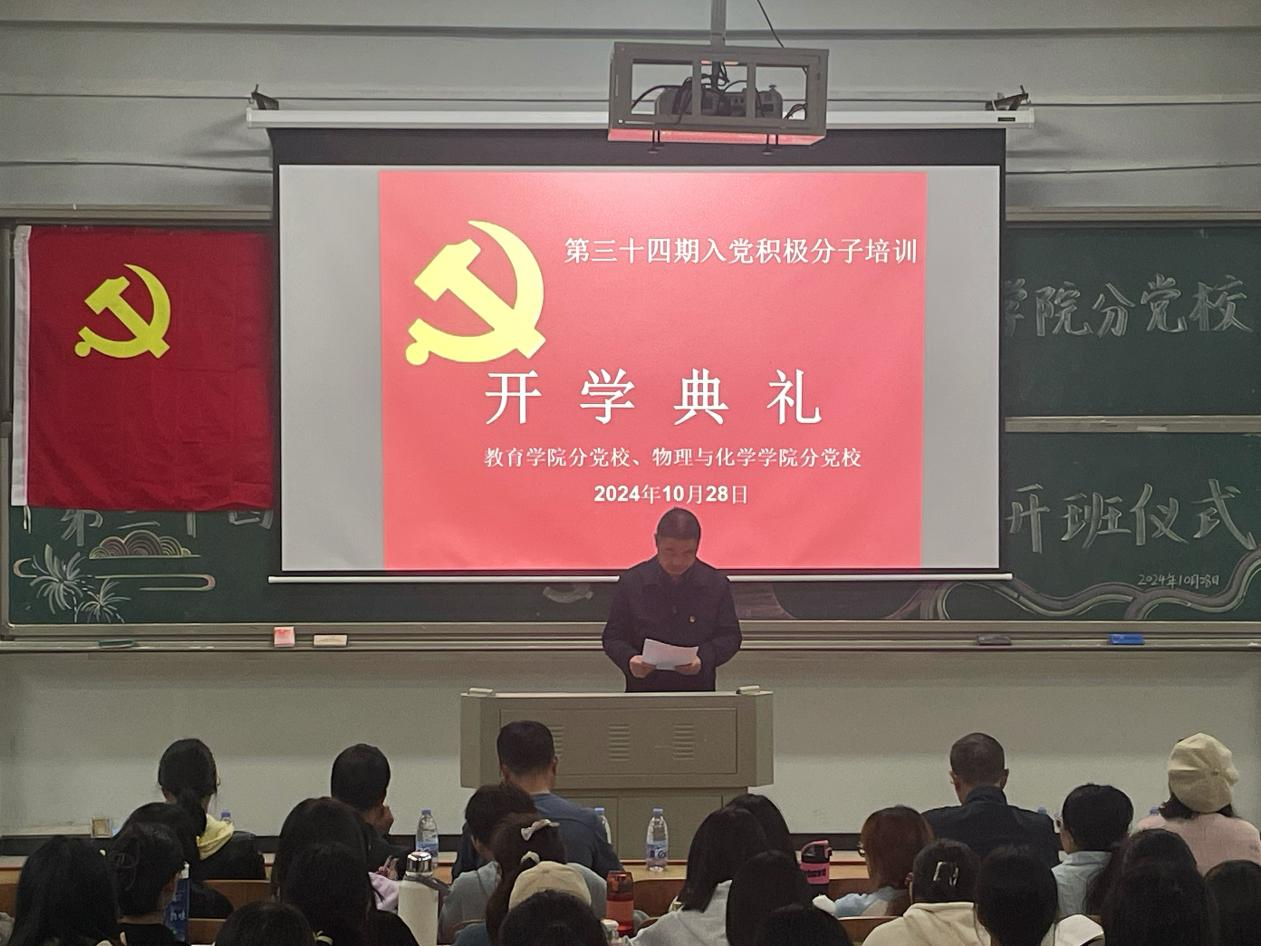 为帮助入党积极分子夯实理论基础、坚定理想信念、端正入党动机,10月28日晚,在怀中南208教室,伟德国际victor1946分党校、物理与化学公司分党校举行了第34期入党积极分子培训班开班典礼。培训班由伟德国际victor1946分党校承办,学员由伟德国际victor1946、物化公司两个公司151名积极分子组成。公司党委书记朱承学、物理与化学公司党委书记陈志武,公司党委副书记张志新、学工办主任杨杨、员工第一党支部书记邓魁、员工第二党支部书记杨菲出席开班典礼。开班典礼由杨杨负责主持。