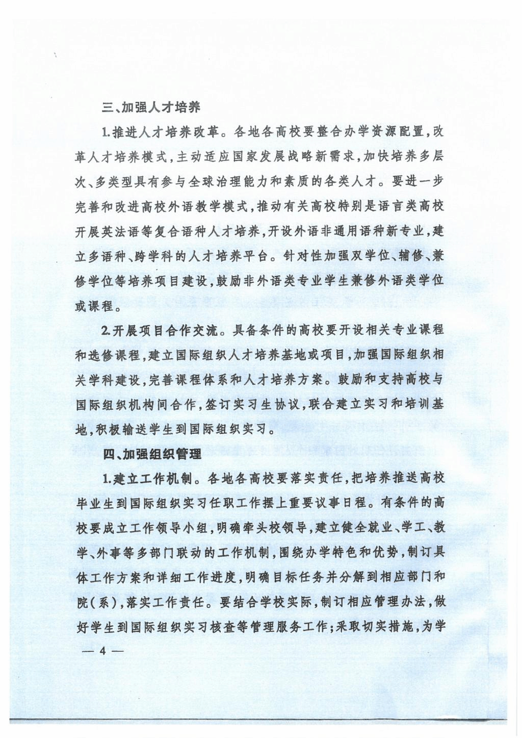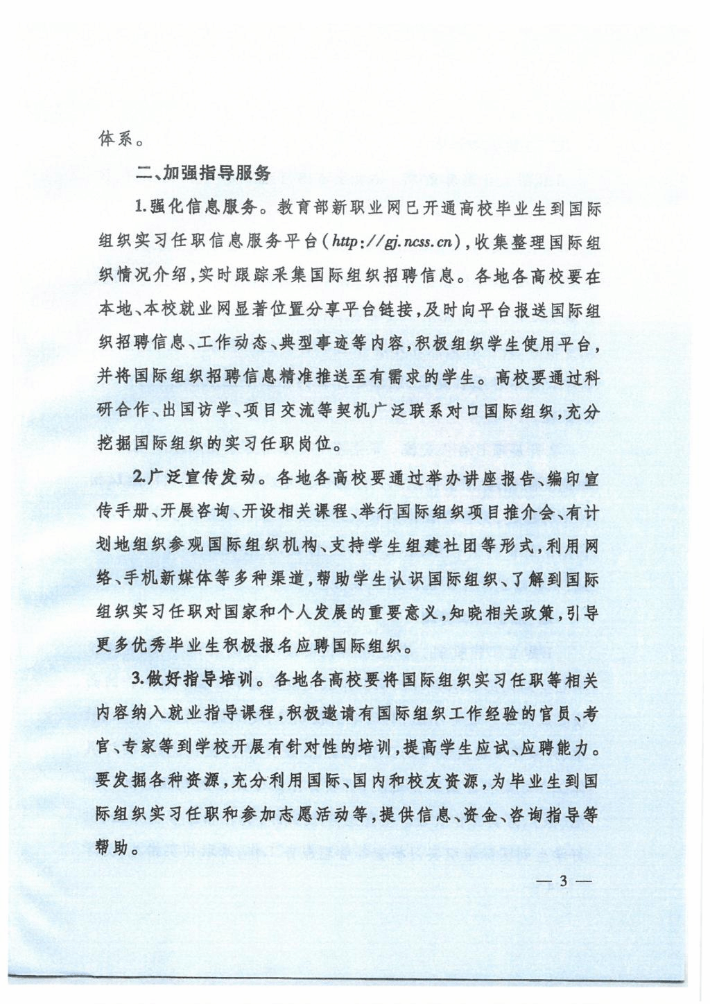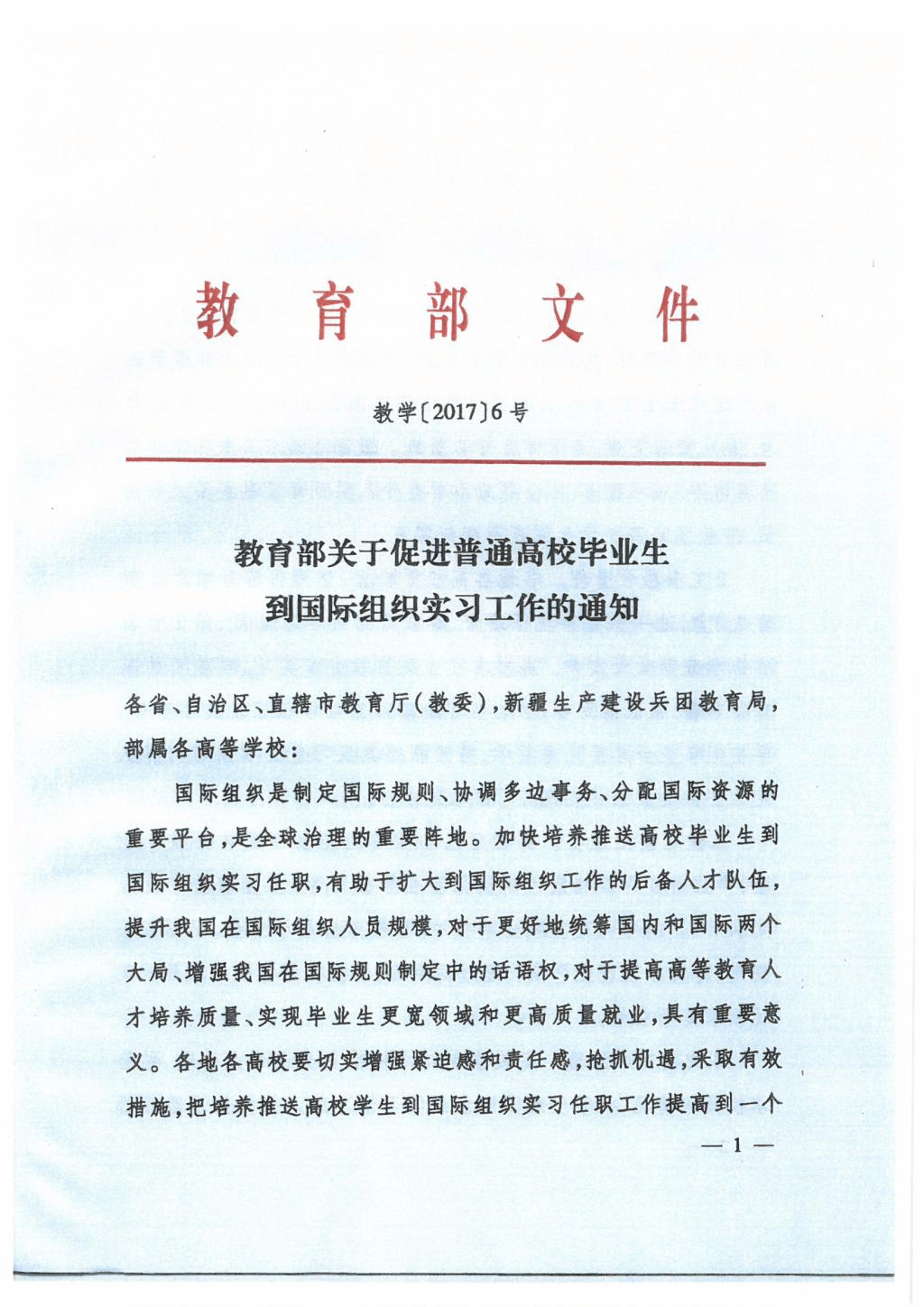 转发教育部关于促进普通高校毕业生到 国际组织实习工作的通知
