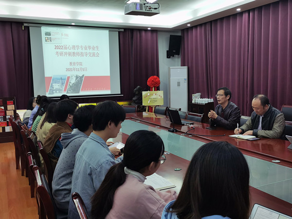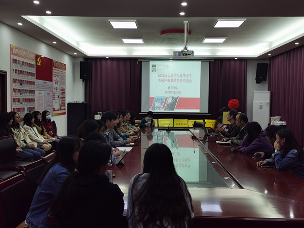 11月5日晚,伟德国际victor1946在特立楼北208会议室举行2022届心理学专业毕业生考研冲刺教师指导交流会。公司党委副书记张志新、副经理黄月胜出席会议。