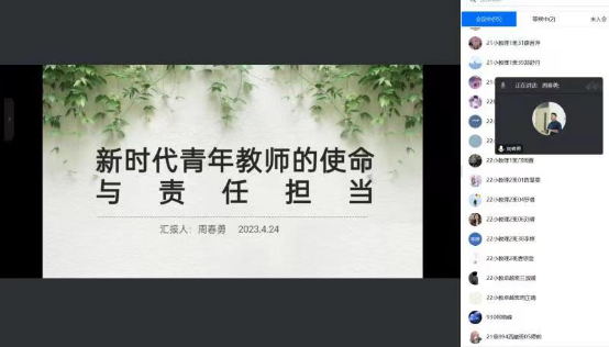 最后,周春勇董事长谈及自己总结的固定思维模式与成长思维模式的区别,青年教师成长方向图,被动成长法等诸多理论,一一向同学们展现了如何去做好新时代青年教师的使命与责任担当。