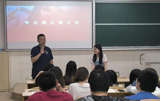 叶果将各项专业技能编成一段口诀:“拍摄、批图、做课件;剪辑、维修、做网线;飞无人机、带机器人”,她强调专业是立身之本,指出要想做一名合格的信息技术老师,还需要具备指导带领员工参与各项学科竞赛的能力。她希望同学们在大学期间要打牢基础,抓住见习、实习的机会多磨练自己的教学能力。在互动环节,同学们提出了教师薪资待遇情况、一周授课时数、具体教学工作等疑惑,叶果都一一耐心解答。