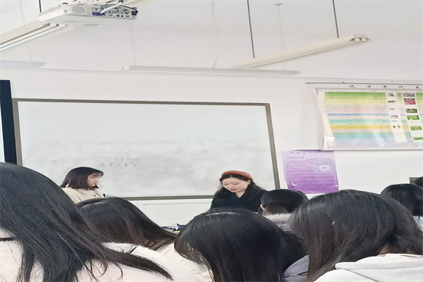 第二环节黄思思学姐对我们进行了课堂教学指导,为潘如艳、唐双俊、李晶晶、郭悦敏这四位同学的课堂教学进行了评价与指导。其中对潘如艳的课堂教学从实验环节提出了不足等等