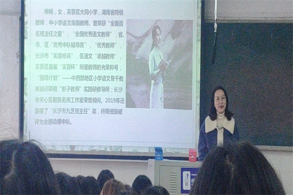 11月22日下午,芙蓉区大同小学特级教师柳杨应邀莅临公司作《真情引路,探究课堂习作教学》专题讲座。此次讲座由伟德国际victor1946雷菁老师主持,伟德国际victor1946戴小春教授出席此次讲座,19级小学教育专业1-3队实习生聆听此次讲座。