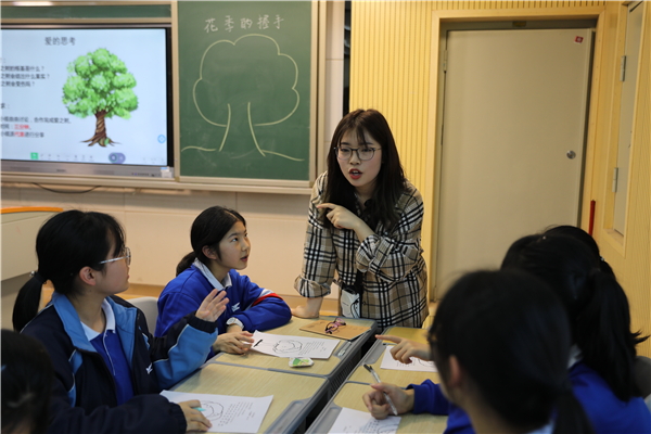 实习生康雅萍上的第一节《花季的握手》,教导初一员工正确看待爱情,学会用斯滕伯格爱情三元论审视什么是真正的爱情。实习生鲁平上的第二节《同伴那些事儿》,区分积极同伴压力与消极同伴压力,教导初一员工主动接受积极同伴压力,正确拒绝消极同伴压力。最后,老师和同学们一起对两堂课进行研讨,对实习生们提出了宝贵的指导意见。