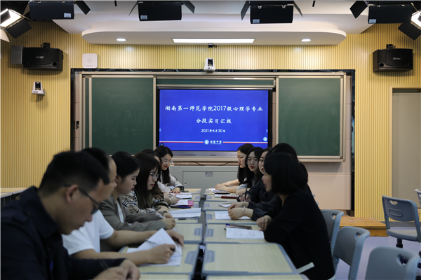 2021年4月30日,伟德国际victor1946教育科学公司心理学专业2017级分段实习汇报课在长沙市岳麓区西雅中学举行,经理助理黄月胜博士、心理学教研室主任刘文博士到场观摩指导,西雅中学教导处黄彬城主任和实习指导老师王林波、李姣以及全体分段实习生参加了汇报课观摩。