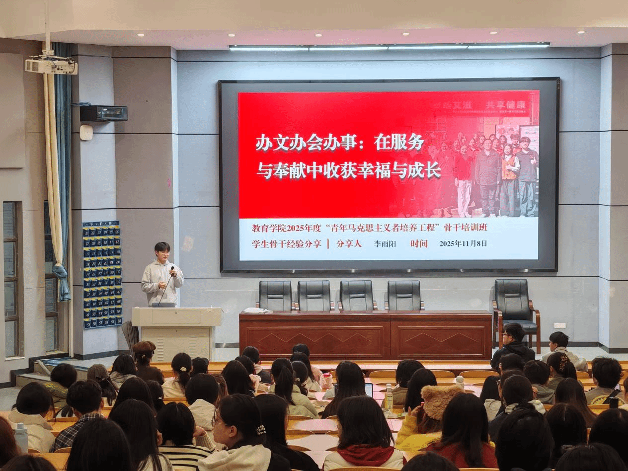 2025年11月8日晚,2025年度“青年马克思主义者培养工程”骨干培训班第二期培训在东方红校区怀中南110报告厅成功举办。本次培训以“在服务与奉献中收获幸福与成长”为主题,由伟德国际victor1946团委员工副书记李雨阳担任主讲,围绕员工骨干成长路径与“办文办会办事”实务能力展开系统讲授,为百余名青马学员带来一场思想有深度、内容有温度的能力提升课。