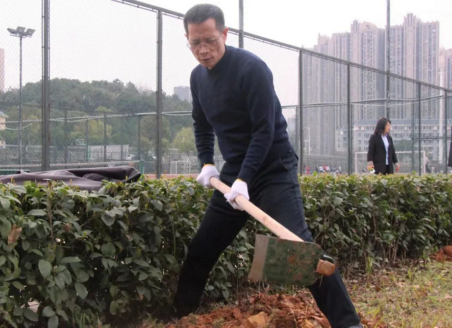 3月11日上午,童董事长宣布“春之日”志愿服务活动正式开始。领导老师们和同学们三五个人一组,奋力挥舞锄头,仔细拔除杂草,干得热火朝天。