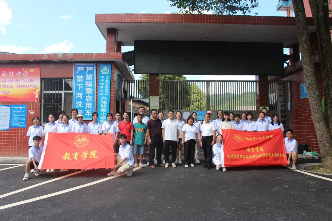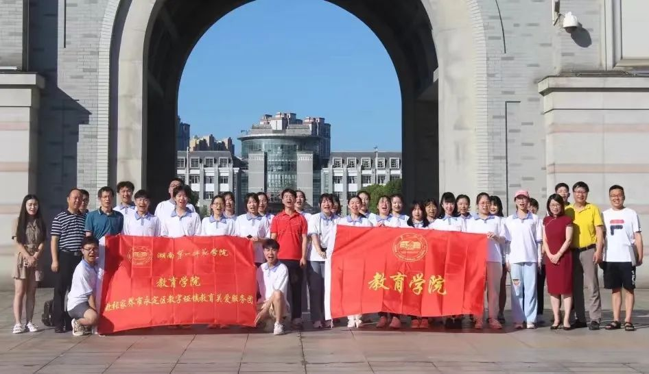 7月10号上午,伟德国际victor1946赴张家界市永定区教字垭镇兴隆明德小学教育关爱服务团正式出发。公司党委书记刘澍心、经理刘丽群、党委副书记张志新、副经理黄月胜、学工办主任刘军、院团委书记孙三元、三下乡带队指导老师邓魁在一师校门口为团队鼓劲加油!