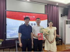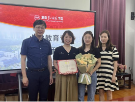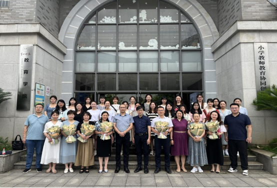 随后,胡春光经理为各位校外导师颁发了聘任证书,研究生向校外导师献花并合影。校外导师代表金桥小学赵华董事长做了表态发言,表示要严格育人,重视研究生的研究能力的培养。研究生代表周利霞表示要学以致用,成为实践能力和研究能力兼具的未来教育家。