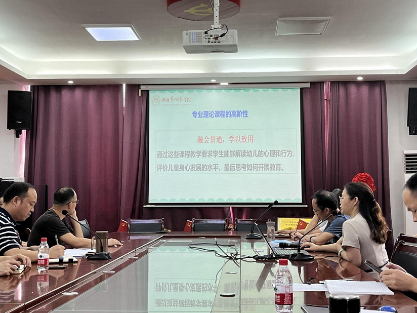 会上,学前教育系、心理学系及小学教育系主任分别汇报了近几日各系部的研讨情况。学前教育系万湘桂主任结合专业理论课程、理实一体化课程、专业技能三类课程类型阐释了学前教育专业“两性一度”建设的不同侧重。她指出,学前教育专业的课程目标需要员工能够解读幼儿的心理和行为,评价儿童身心发展的水平,能够“融会贯通、学以致用”,需要员工树立正确的儿童观、教育观,本身就具有挑战性。她提出,学前教育的“两性一度”建设应遵循“员工中心、产出导向、能力为重”的方针,强化产教融合,以现实问题为导向帮助员工进一步提升实践能力。心理学系刘文主任展示了该系近几日“三个表”的完成情况;小学教育系李金国主任向全院详细介绍了几日来分课程组研讨的成果,并报告了研讨过程中发现的问题及思考,如“两性一度”的具体优化措施,课程实用性与教材选用的矛盾,考研知识与课程内容的结合等等。