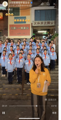 图1:2023年4月,担任直播主持人,活动由太阳慈善助学基金会联合长沙文和友、长江商公司举办乡村美育作品展