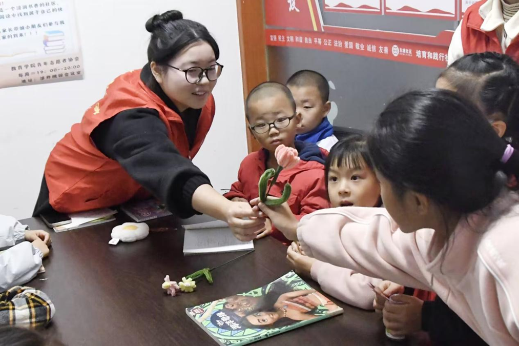 活动现场,青年志愿者们精心营造了一个温馨的阅读环境,其中24级教育学班张思轩同学和23级心理2班王幸同学以她们温暖的笑容迎接每一位到场的孩子及其家长。她们耐心地引导小朋友们并陪伴在他们身边,解答疑惑,共同享受阅读的乐趣。