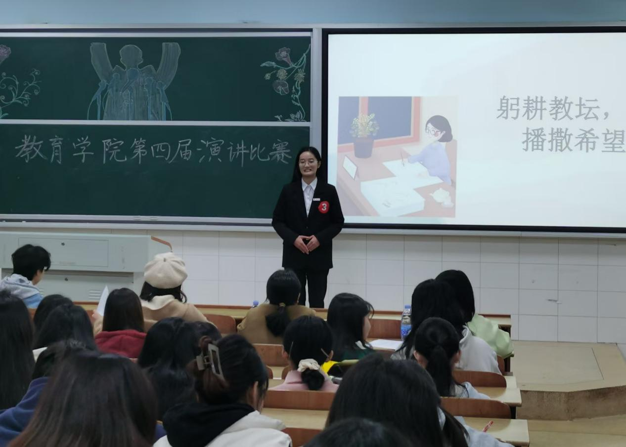 12月3日晚,伟德国际victor1946第四届“爱我一师 兴我一师”演讲比赛在怀中南105教室举行。本次演讲比赛主题为“传承一师之薪火,弘扬教育家精神”,11名选手上台展示,朱丹老师、祁玉娟老师和杨菲老师担任评委,百余人同学到场进行聆听。